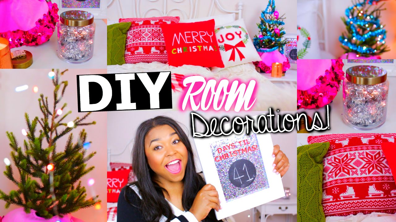 A neutral shabby chic christmas bedroom with evergreen wreaths garlands knit blankets and mini christmas trees a red and white bedding set a christmas tree with lots of lights pompom garlands and gift boxes right on the bed. In this web may has many information about diy room decor ideas for christmas. Sarabeautycorner diy comedy makeup nail art 7 922 134 views. Diy project at home.