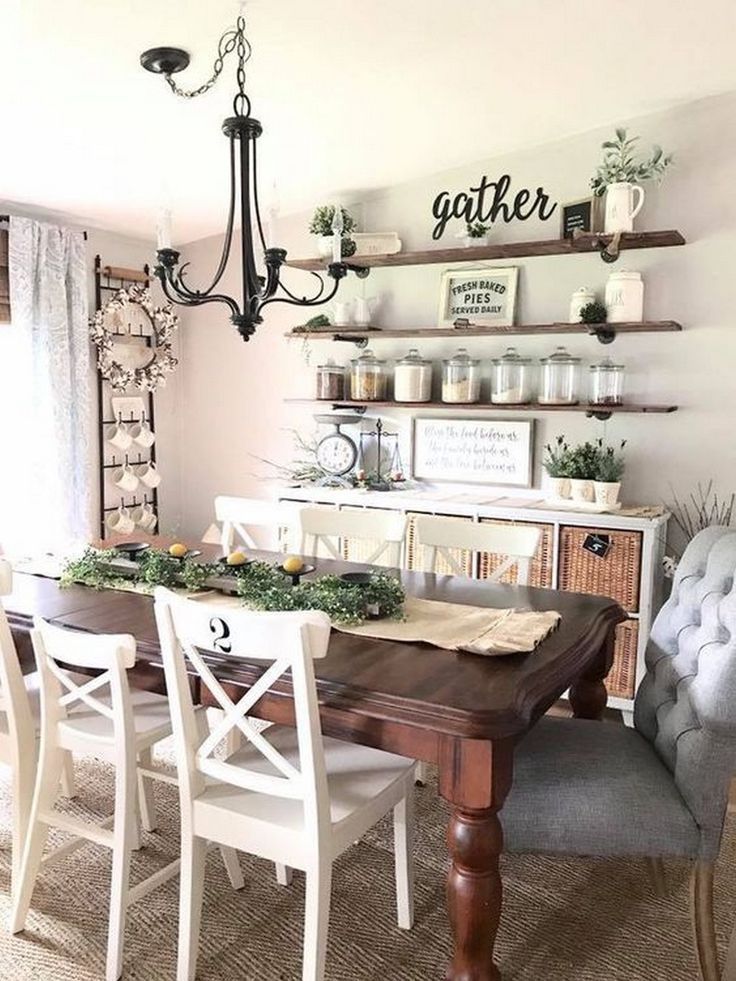 Dining room wall decor shelves. See more ideas about dining room shelves home decor decor. Curtains wall decor dining chairs dining table our dining room walls are the one space in our home that gives us creative license to do something totally unexpected. Farmhouse style uses a palette of white with rustic wood finishes. Aug 31 2019 explore nikki carter s board dining room shelves on pinterest.