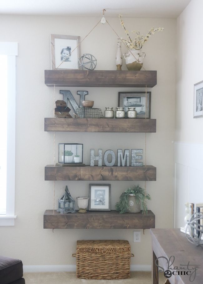 Floating shelves are shelving which are set on the wall. Fill an entire wall with rustic slabs to add a bit of extra warmth to cool toned room. All you need to get started with this diy project is a free wall some diy floating shelf ideas and the minimal tools required. Check out some ideas you can implement at your own home.